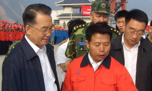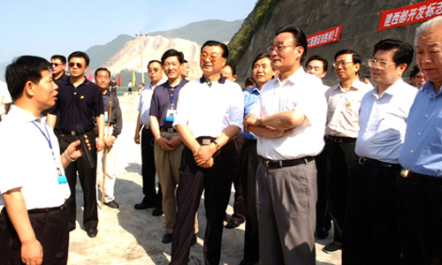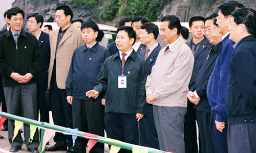 溫家寶總理蒞臨紫坪鋪水利樞紐工程視察。