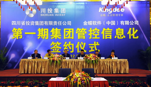 隨后,李文志、孫雁飛分別代表川投集團(tuán)與金蝶公司簽署了項(xiàng)目建設(shè)及服務(wù)合同,標(biāo)志著川投集團(tuán)第一期管控信息化建設(shè)項(xiàng)目正式啟動(dòng)。