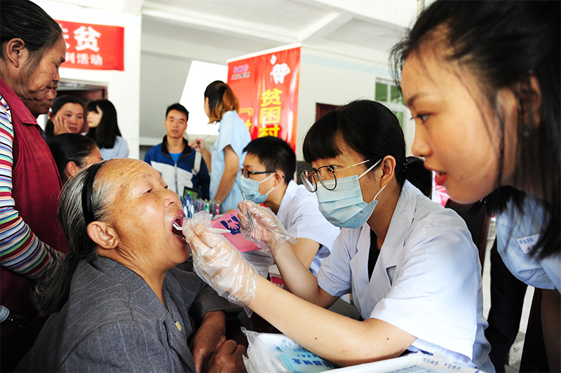 活動當(dāng)天,天空飄著蒙蒙細(xì)雨,村民們熱情絲毫不減,紛紛前來感受黨員們精心準(zhǔn)備的服務(wù)項(xiàng)目,這是他們以前未曾體驗(yàn)過的。在村委會現(xiàn)場,機(jī)關(guān)六支部的“世界愛牙日,走進(jìn)貧困村”口腔義診受到村民一致好評,來自華西牙科的醫(yī)生護(hù)士為每位老鄉(xiāng)檢查牙齒、派發(fā)牙刷、牙膏等,為行動不便的村民上門義診,簡單幾句“保護(hù)好牙齒健康,一定要養(yǎng)成口腔衛(wèi)生好習(xí)慣”的叮囑,讓老鄉(xiāng)們感動不已。八支部的“法律服務(wù),助力精準(zhǔn)扶貧”咨詢,由資深律師針對村民涉及的婚姻糾紛、未成年人保護(hù)及老年人權(quán)益保障等法律問題現(xiàn)場答疑。一支部為村委會捐贈的電腦、打印機(jī)和投影儀等設(shè)備,是讓村民們學(xué)習(xí)知識、了解外界,豐富業(yè)余文化生活。聯(lián)合支部的黨員們冒雨登上陡峭泥濘的食用菌基地,幫助村民采摘、加工和包裝姬菇,展示“你種一株菌,我出一份力”的炙熱情懷。