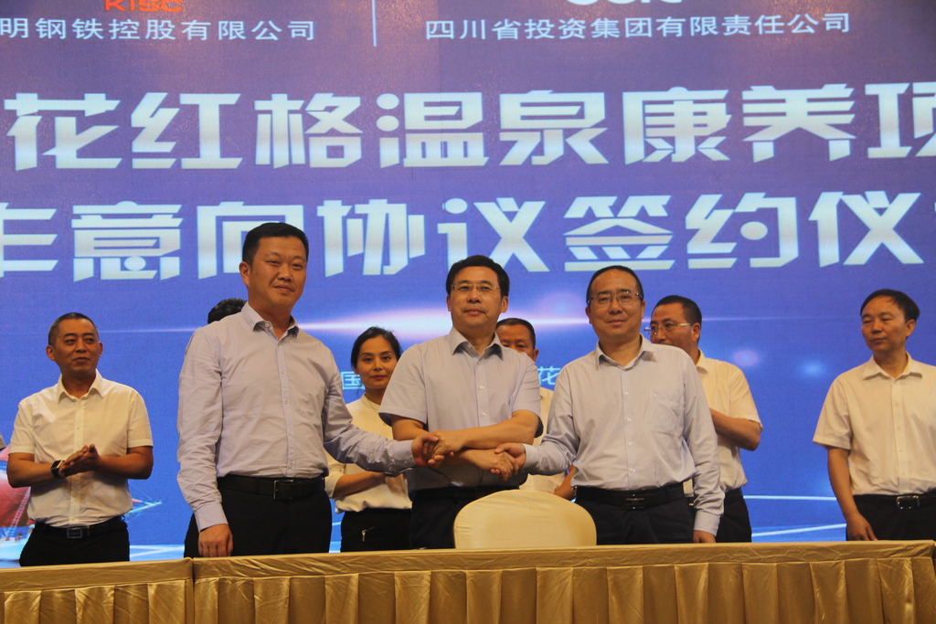 7月11日,川投集團與昆明鋼鐵控股有限公司(以下簡稱“昆鋼控股”)及其全資子公司云南華創(chuàng)文化旅游集團有限公司(以下簡稱“云南華創(chuàng)”)在攀枝花市鹽邊縣紅格鎮(zhèn)簽署了“紅格溫泉康養(yǎng)項目”合作意向協(xié)議。攀枝花市副市長、黨組成員李仁杰,鹽邊縣委副書記、縣長譚興忠,昆鋼控股黨委常委、副總經(jīng)理錢永祥,云南華創(chuàng)黨委書記、董事長蘇亞濤,川投集團黨委委員、職工董事、工會主席王懷林出席簽約儀式。