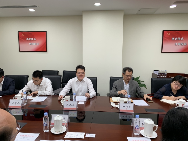 5月16日下午,集團(tuán)公司副總經(jīng)理蔣茂森、總經(jīng)理助理、戰(zhàn)略投資部部長田傳平率隊到訪中國建材集團(tuán)有限公司(以下簡稱“中國建材”)北京國海中心總部,與中國建材副總經(jīng)理、黨委常委常張利一行開展座談交流。