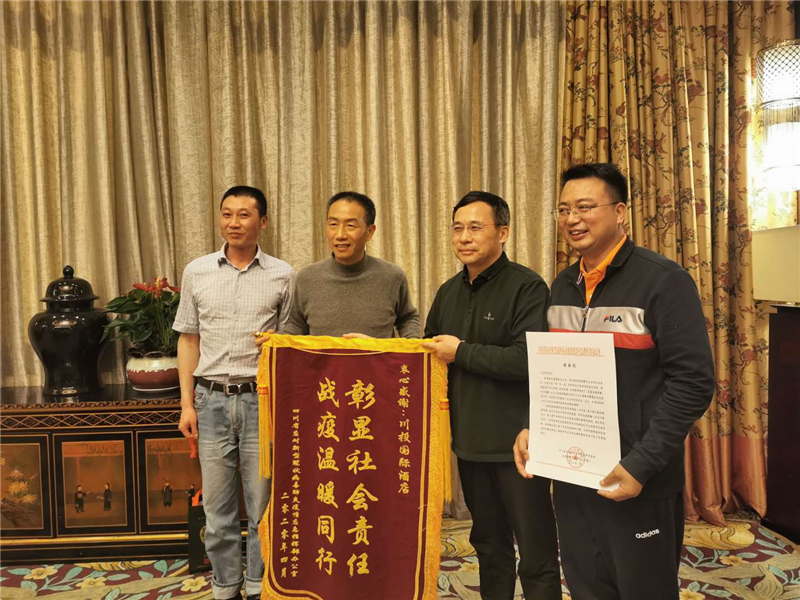4月25日,四川省衛(wèi)生健康委員會黨組書記沈驥蒞臨川投國際酒店,代表四川省應對新型冠狀病毒肺炎疫情應急指揮部辦公室向川投國際酒店送上了紅色錦旗及感謝信,川投集團副總經(jīng)理王懷林,川投國網(wǎng)黨委書記、執(zhí)行董事王旭濤出席授旗儀式。