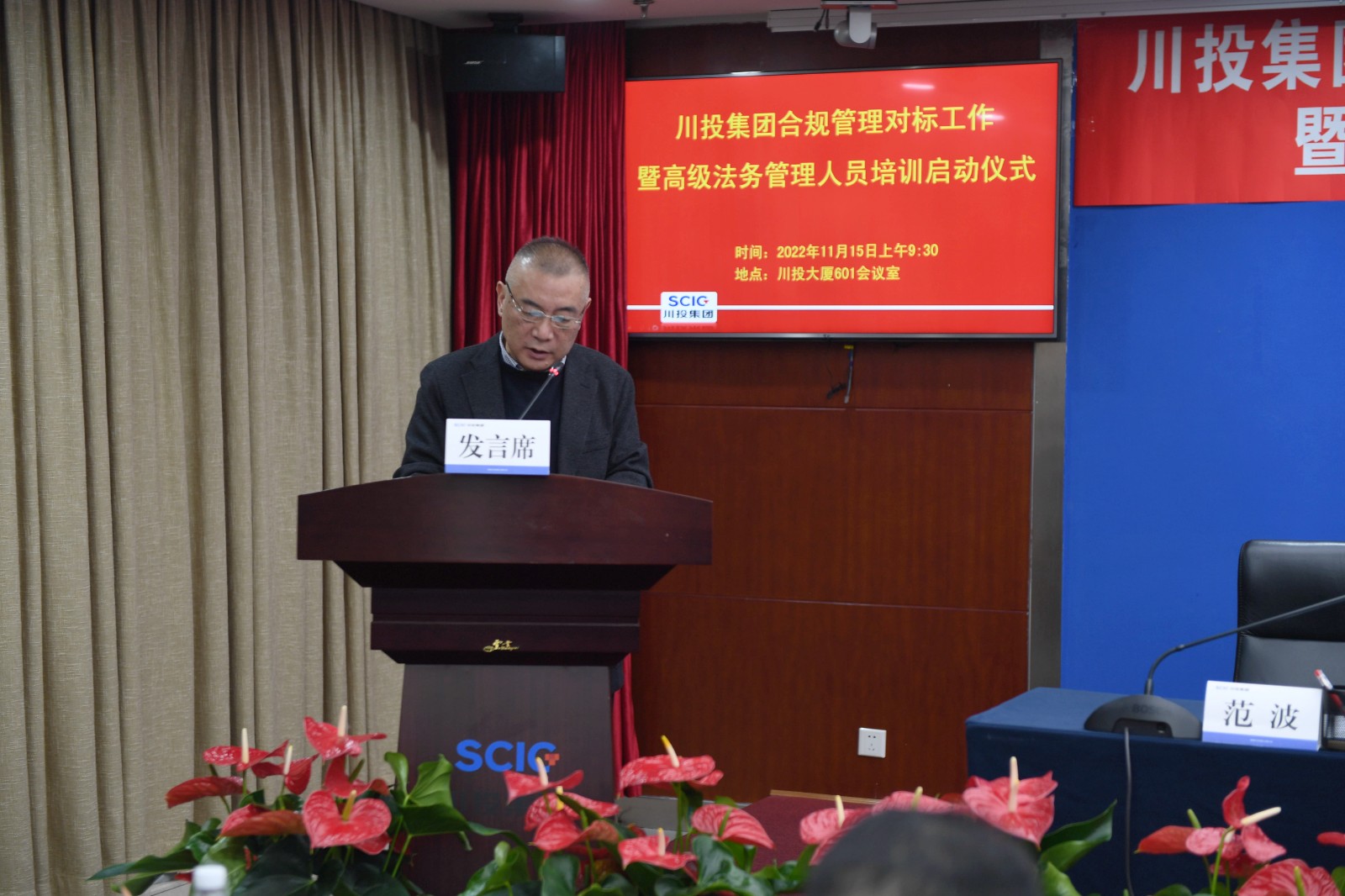 為進(jìn)一步做好對標(biāo)合規(guī)管理國際標(biāo)準(zhǔn)、強(qiáng)化合規(guī)管理體系建設(shè)工作,切實(shí)推進(jìn)全集團(tuán)依法治企工作,提升川投集團(tuán)法治建設(shè)、合規(guī)管理及風(fēng)險防控能力,11月15日,川投集團(tuán)舉辦合規(guī)管理國際標(biāo)準(zhǔn)對標(biāo)工作啟動儀式暨高級法務(wù)管理人員培訓(xùn)開班儀式。集團(tuán)公司黨委委員、副總經(jīng)理王懷林主持儀式。集團(tuán)公司黨委委員、副總經(jīng)理舒勇出席會議并講話。集團(tuán)公司副總經(jīng)理孫前元,西南財經(jīng)大學(xué)法學(xué)院黨委書記范波出席活動。