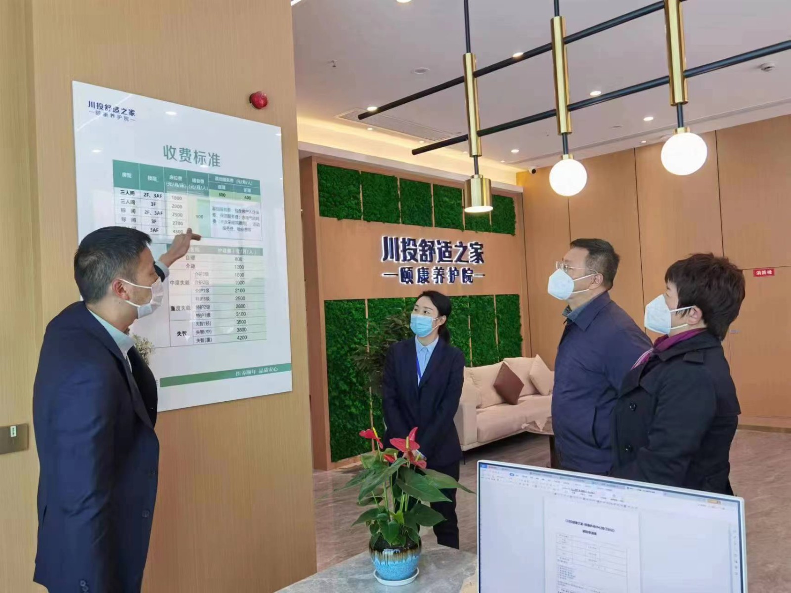 李文志一行實地察看了養(yǎng)護(hù)院樓層布局、功能區(qū)運行、設(shè)備設(shè)施運行情況,重點了解了養(yǎng)護(hù)院運營、服務(wù)標(biāo)準(zhǔn)化建設(shè)、醫(yī)護(hù)人員配備及資質(zhì)等情況。李文志指出,作為川投集團(tuán)“一體兩翼”戰(zhàn)略布局的重要一翼,川投大健康產(chǎn)業(yè)集團(tuán)要以“頤養(yǎng)晚年的倡導(dǎo)者、健康晚年的守護(hù)者、幸福晚年的踐行者”為使命,對標(biāo)行業(yè)一流水平,提升管理服務(wù)質(zhì)量,完善品牌體系及內(nèi)涵,打造康養(yǎng)產(chǎn)業(yè)城市核心機(jī)構(gòu)養(yǎng)老示范標(biāo)桿。要圍繞“中國健康谷”IP,致力培育推廣“川投舒適之家”品牌和產(chǎn)品體系,聚力打造規(guī)?;?、集約化、可持續(xù)化的養(yǎng)老服務(wù)投資運營平臺,深度賦能大健康城市康養(yǎng)業(yè)務(wù)板塊,突顯國企辦養(yǎng)老“領(lǐng)頭羊”作用。