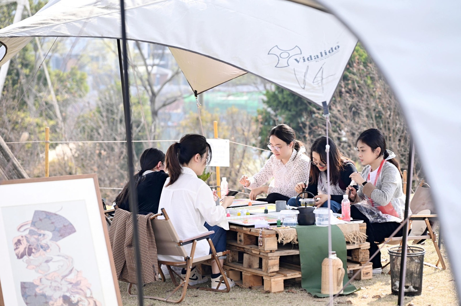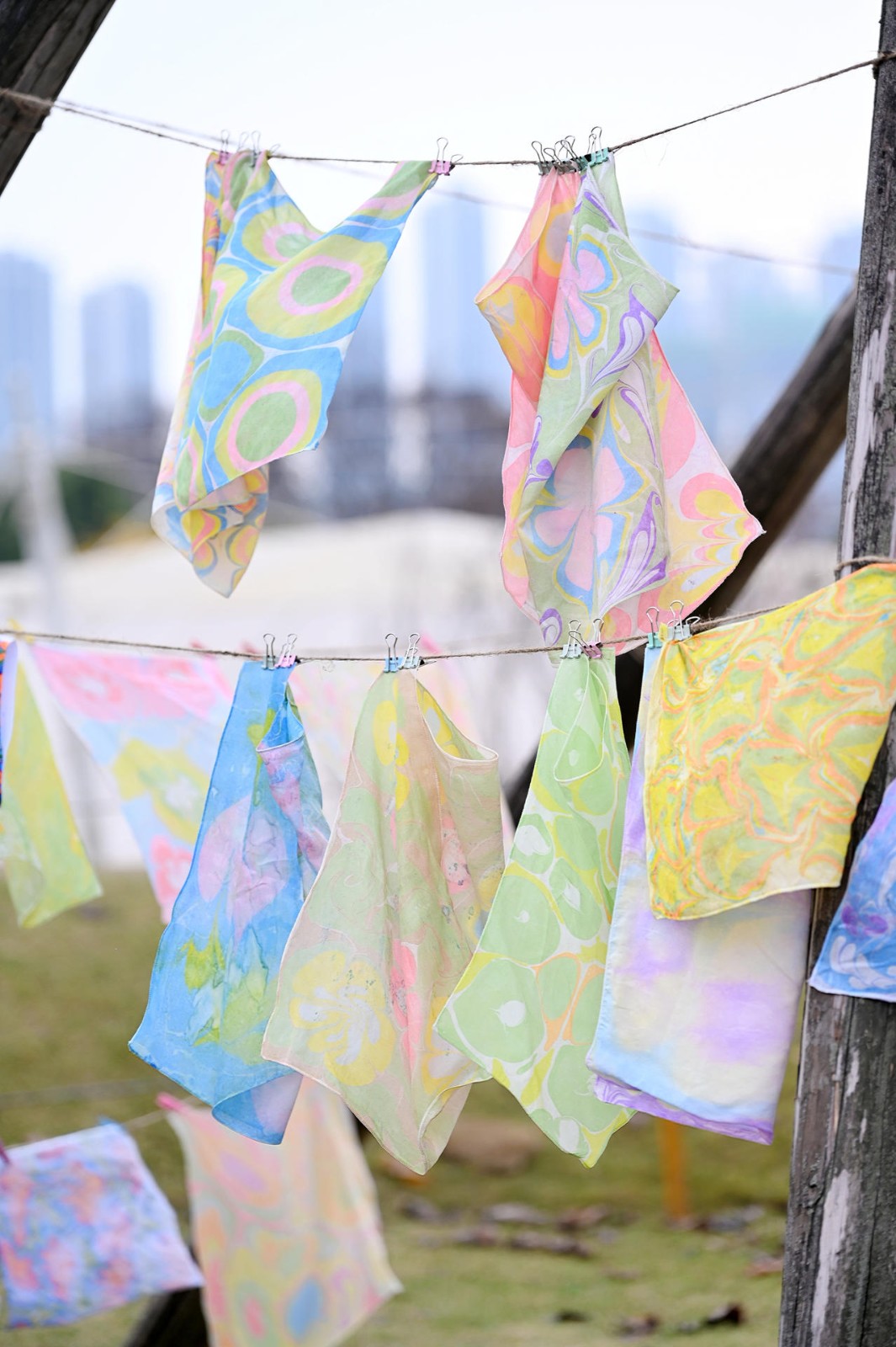 水拓工藝起源于中國唐朝,于2014年被聯(lián)合國教科文化組織列入人類非物質(zhì)文化遺產(chǎn)代表名單?;顒蝇F(xiàn)場,在專業(yè)老師的帶領(lǐng)下,女職工們一起DIY滴墨成畫的水拓絲巾。整個過程妙趣橫生,顏料如蜻蜓點水般滴入水中,隨著流淌、融合、勾勒,一幅幅獨一無二的絢麗作品應(yīng)運而生。