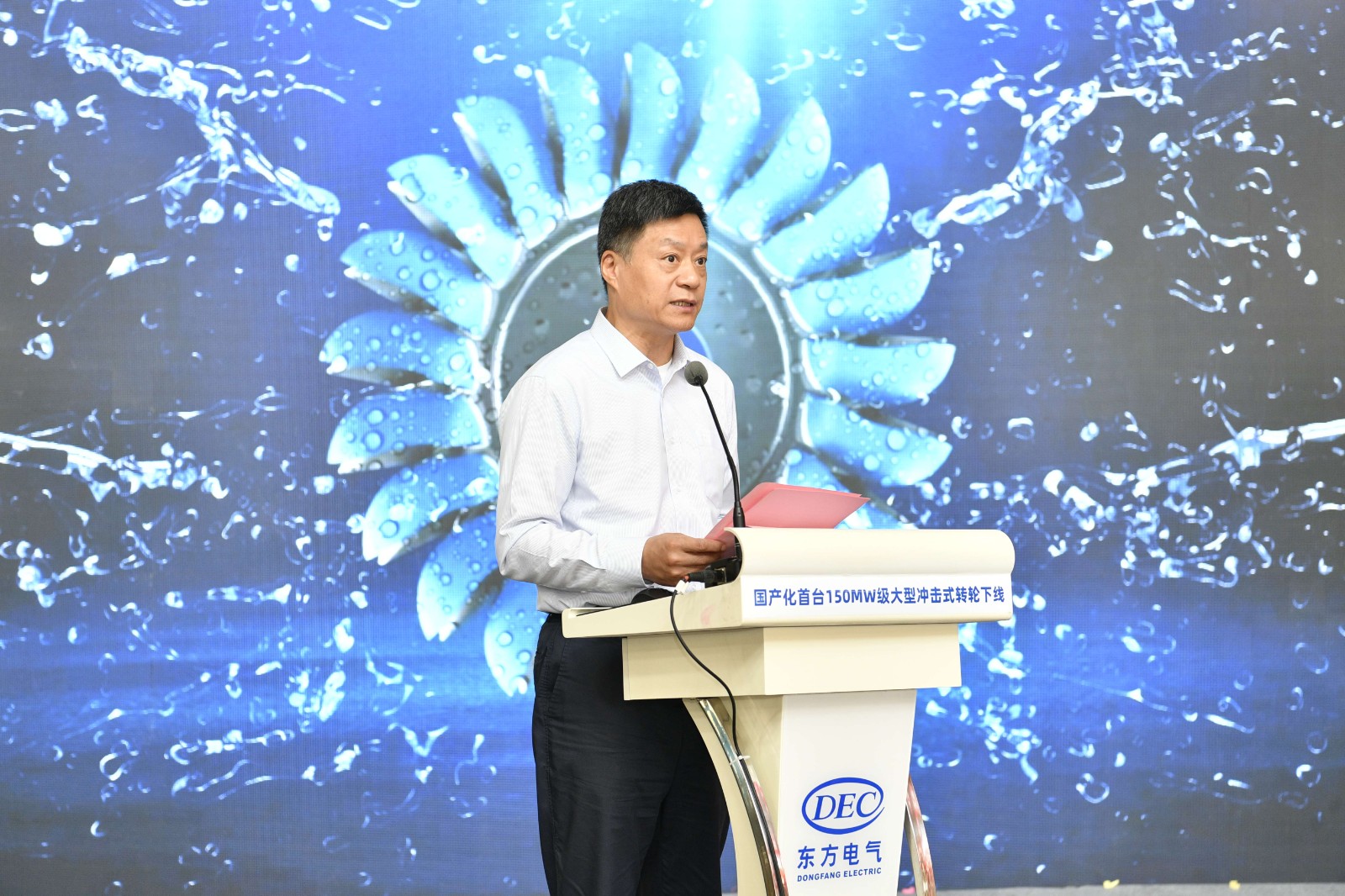 5月16日,由東方電氣和川投集團聯合研制的國內首臺150兆瓦級大型沖擊式轉輪下線儀式在德陽東方電氣現場舉行。集團公司黨委副書記、副董事長、總經理李文志出席儀式并講話。