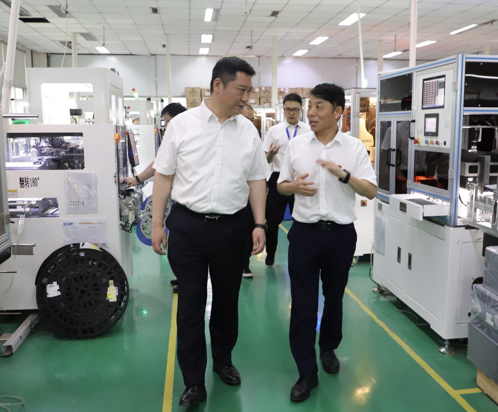 黃勁一行深入宏明雙新沖壓車間、自動(dòng)化車間、污水處理站等重點(diǎn)區(qū)域,現(xiàn)場(chǎng)了解公司生產(chǎn)產(chǎn)能、科技創(chuàng)新、市場(chǎng)開拓及安全環(huán)保等情況,聽取了公司今年以來的主要生產(chǎn)經(jīng)營情況及當(dāng)前面臨的主要挑戰(zhàn)和未來舉措的匯報(bào)。