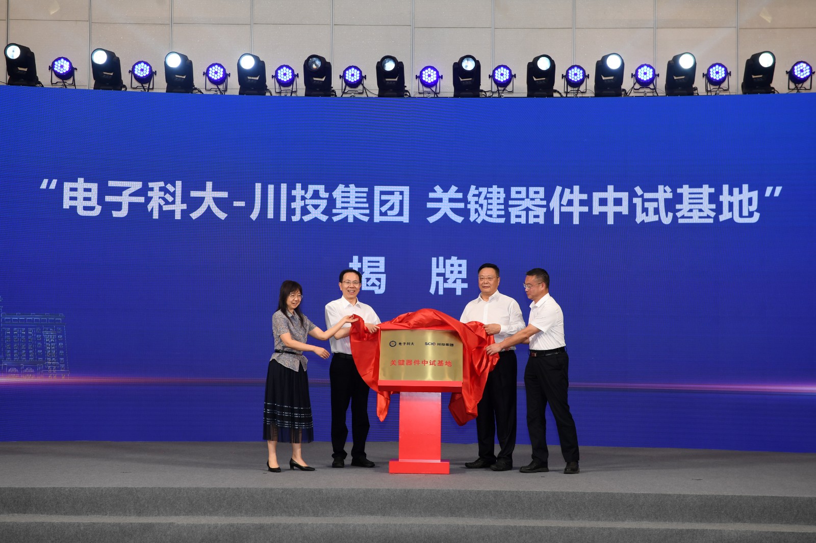 川投集團黨委副書記、副董事長、總經理李文志主持儀式,并與電子科技大學黨委副書記、校長胡俊,省信息化工作辦公室專職副主任陳文濤,省科技廳二級巡視員王建偉一起,共同為“電子科大-川投集團關鍵器件中試基地”揭牌。