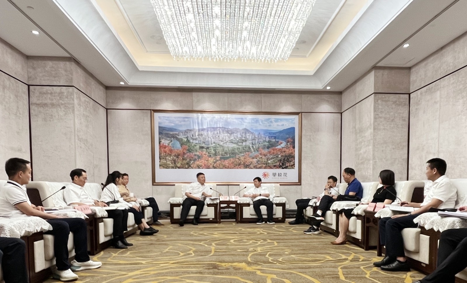 攀枝花市委常委、副市長(zhǎng)李少剛,副市長(zhǎng)任礎(chǔ)軍;川投集團(tuán)副總經(jīng)理張昊參加會(huì)談。