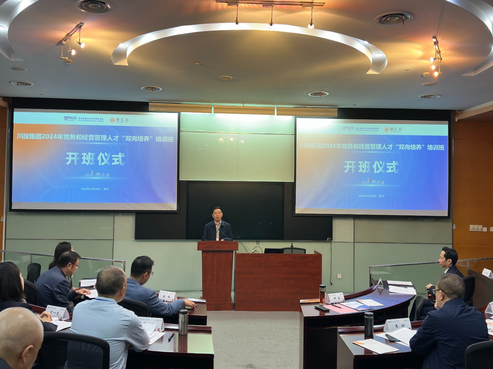 10月28日至11月1日,川投集團(tuán)2024年黨務(wù)和經(jīng)營(yíng)管理人才“雙向培養(yǎng)”培訓(xùn)班在新加坡國(guó)立大學(xué)蘇州研究院舉行。集團(tuán)公司黨委副書記、董事鄧凱作開班動(dòng)員講話,集團(tuán)公司黨委委員、副總經(jīng)理舒勇,副總經(jīng)理張昊,黨委委員、職工董事、工會(huì)主席朱莉出席開班式并參加培訓(xùn)。
