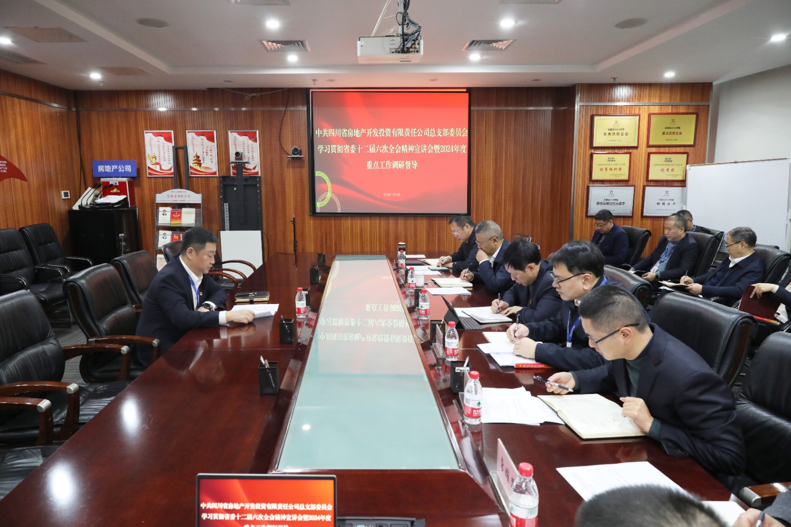 12月3日,川投集團(tuán)財(cái)務(wù)總監(jiān)黃勁在川投房地產(chǎn)宣講省委十二屆六次全會(huì)精神,并調(diào)研督導(dǎo)川投房地產(chǎn)2024年度重點(diǎn)工作完成情況。川投房地產(chǎn)黨總支書記、董事長龔帝偉主持會(huì)議。