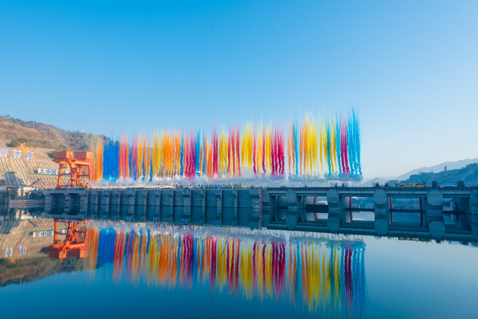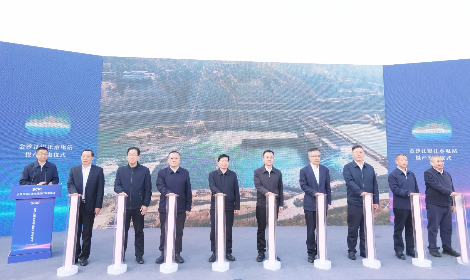 上午9時許,隨著儀式現(xiàn)場下達首臺機組開機發(fā)電指令,吳群剛、吳曉曦、范繼躍、李文志、林建國、李仁杰等領導按下啟動柱,共同啟動金沙江銀江水電站投產(chǎn)發(fā)電。