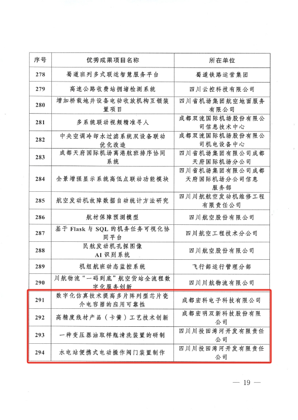 近日,四川省總工會(huì)印發(fā)《關(guān)于四川省職工“五小”活動(dòng)優(yōu)秀創(chuàng)新成果的通報(bào)》,川投集團(tuán)所屬川投信產(chǎn)《數(shù)字化仿真技術(shù)提高多片陣列型芯片瓷介電容器的應(yīng)用可靠性》《高精度線材產(chǎn)品(卡簧)工藝技術(shù)創(chuàng)新》、川投田灣河《一種變壓器油取樣瓶清洗裝置的研制》《水電站便攜式電動(dòng)操作閥門(mén)裝置制作》共4項(xiàng)成果榜上有名。