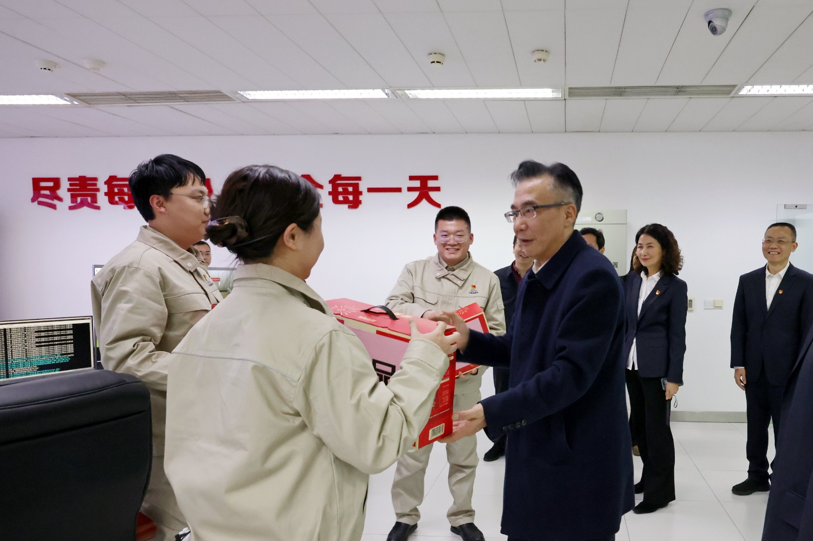 在川投田灣河流域調(diào)度中心,吳曉曦與大家親切交談,送上慰問品及新春祝福,并詳細了解當前電力生產(chǎn)運行情況,聽取了川投田灣河工作匯報。