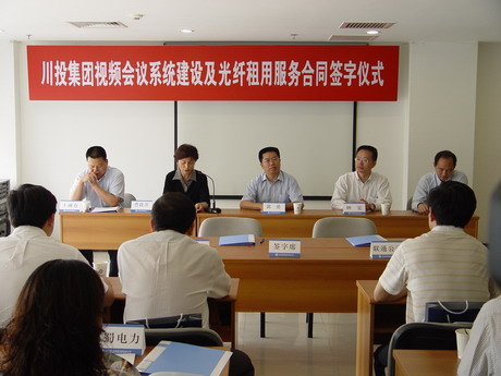 2007年5月14日,川投集團(tuán)視頻會議系統(tǒng)建設(shè)和光纖租用服務(wù)合同簽字儀式在川投大廈1307會議室隆重舉行。中興通訊股份有限公司副總裁鐘宏、中國聯(lián)通成都分公司副總經(jīng)理王硯春、北京神州數(shù)碼有限公司西區(qū)政府事業(yè)部總經(jīng)理張軍、川投集團(tuán)總經(jīng)理郭勇、總會計(jì)師曹筱萍、總經(jīng)理助理李文志、內(nèi)部專家張華端、徐建華、梁有國及集團(tuán)所屬部分企業(yè)出席了簽字儀式。簽字儀式由川投集團(tuán)總會計(jì)師曹筱萍主持,川投集團(tuán)總經(jīng)理助理李文志、中國聯(lián)通成都分公司副總經(jīng)理王硯春、北京神州數(shù)碼公司冷剛分別代表各自企業(yè)簽署了光纖通信線路租用服務(wù)合同及視頻會議系統(tǒng)建設(shè)合同。此次簽字儀式的舉行,標(biāo)志著川投集團(tuán)管理信息化建設(shè)進(jìn)入了實(shí)質(zhì)性的建設(shè)實(shí)施階段。