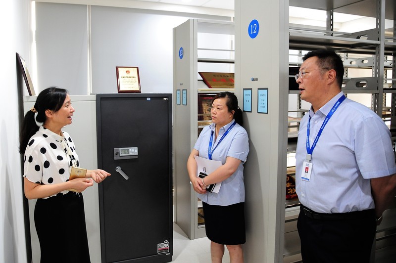 督查組在聽取了集團公司檔案管理基本情況、貫徹檔案法律法規(guī)、完善檔案管理制度、健全組織機構(gòu)、加強檔案業(yè)務(wù)培訓(xùn)、檔案信息化建設(shè)等方面的情況匯報后,對文書檔案、實物檔案、聲像檔案、光盤檔案歸檔情況和信息中心機房建設(shè)情況進(jìn)行了實地檢查和指導(dǎo),詳細(xì)詢問了檔案的收集、整理、歸檔、保管、保密、利用等制度執(zhí)行情況,并對檔案室設(shè)備設(shè)施是否達(dá)到“八防”要求進(jìn)行了檢查。