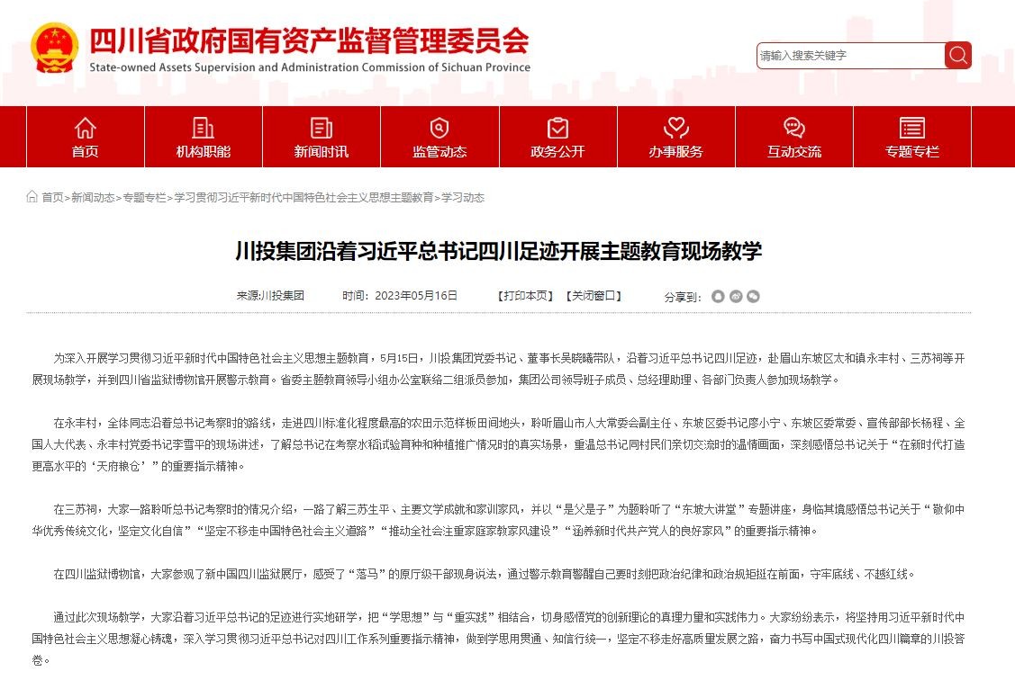 為深入開(kāi)展學(xué)習(xí)貫徹習(xí)近平新時(shí)代中國(guó)特色社會(huì)主義思想主題教育,5月15日,川投集團(tuán)黨委書(shū)記、董事長(zhǎng)吳曉曦帶隊(duì),沿著習(xí)近平總書(shū)記四川足跡,赴眉山東坡區(qū)太和鎮(zhèn)永豐村、三蘇祠等開(kāi)展現(xiàn)場(chǎng)教學(xué),并到四川省監(jiān)獄博物館開(kāi)展警示教育。省委主題教育領(lǐng)導(dǎo)小組辦公室聯(lián)絡(luò)二組派員參加,集團(tuán)公司領(lǐng)導(dǎo)班子成員、總經(jīng)理助理、各部門負(fù)責(zé)人參加現(xiàn)場(chǎng)教學(xué)。