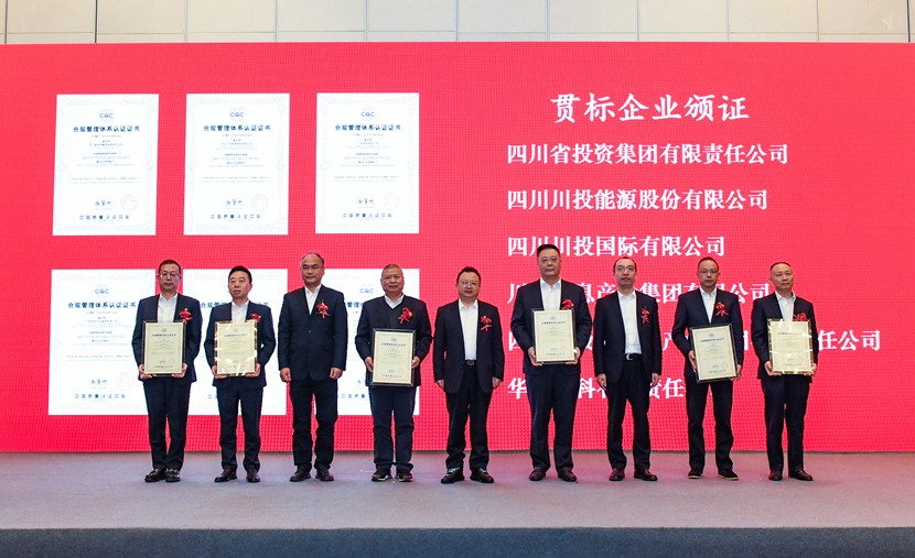 四川省投資集團有限責(zé)任公司(以下簡稱“川投集團”)作為四川省首批合規(guī)管理試點企業(yè),以“1+4+N”模式開展合規(guī)管理探索試點,建立了合規(guī)管理組織推進體系、制度體系、運行體系和保障體系。在合規(guī)管理GB/T35770-2022國家標(biāo)準(zhǔn)及IS037301:2021國際標(biāo)準(zhǔn)公布施行后,川投集團以“1+5+N”模式開展對標(biāo)建設(shè),集團本部及四川川投能源股份有限公司、川投國際有限公司、川投信息產(chǎn)業(yè)集團有限公司、四川川投大健康產(chǎn)業(yè)集團有限責(zé)任公司、華西牙科有限責(zé)任公司5戶所屬企業(yè)均獲得合規(guī)管理雙體系權(quán)威認(rèn)證。會上,與會領(lǐng)導(dǎo)向這5家企業(yè)頒發(fā)了合規(guī)管理認(rèn)證證書。