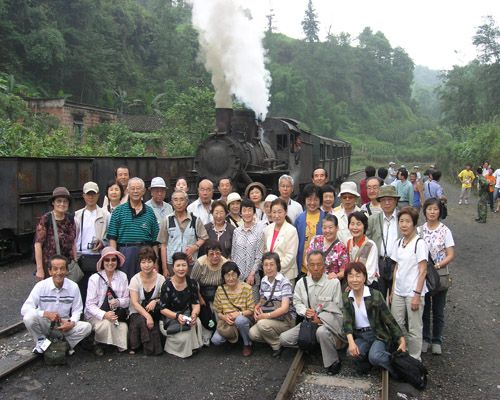 7月4日上午10點(diǎn)30分,載著日本游客的兩輛大巴車緩緩駛進(jìn)了躍進(jìn)站,日本游客一下汽車便抑制不住內(nèi)心的激動,紛紛來到文物保護(hù)紀(jì)念碑前、火車頭前留念?;疖嚻饎恿?,游客們看著窗外滿眼翠綠的景色,激動地舉起相機(jī)為同伴照相。興奮、好奇的日本游客一路上忙個不停,小火車到達(dá)蜜蜂巖站,游客們站到鐵道線旁十分好奇地觀看小火車在Y型軌道上調(diào)頭,待車停好后,便迫不急待地在火車前照相合影;有位游客還用中國話和司機(jī)攀談,一邊說她還一邊高興地手舞足蹈起來。市川市副議長大川正博先生說:剛才乘坐了小火車后,油然而生一種懷舊感,以前日本也有過蒸汽火車,現(xiàn)在雖已電氣化,但我們對蒸汽火車仍然十分懷念。大川正博先生還對嘉陽小火車沿途旖旎的風(fēng)光、風(fēng)土人情贊不絕口。此次市川市到嘉陽乘坐小火車的旅游團(tuán)是近年來人數(shù)最多的外國旅游團(tuán)隊。