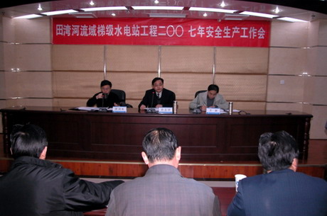 1月20日,公司在辦公樓二會議室召開“田灣河流域梯級水電站工程二○○七年安全生產工作會”。公司總經理、安委會主任孫志祥、副總經理、安委會副主任王新、總工程師、安委會副主任唐劍虹出席了會議,公司各部門經理、各參建單位負責人和安全負責人參加了會議。