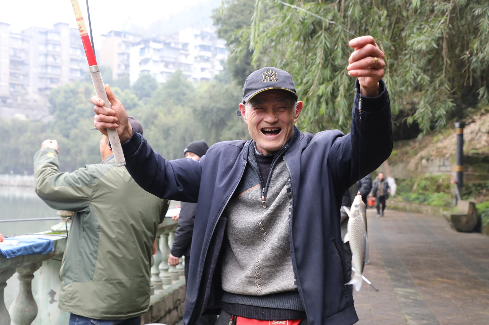清晨,觀音溪畔微風(fēng)輕拂、楊柳依依,釣魚活動在此舉行,河道兩岸早已圍滿了垂釣愛好者。水面波光粼粼,魚兒在水中歡快嬉戲,時不時躍出水面。釣魚者們?nèi)褙炞?,眼睛緊緊盯著浮漂。活蹦亂跳的魚兒不時被拉出水面,岸上響起陣陣歡呼,喜悅之情溢于言表。
