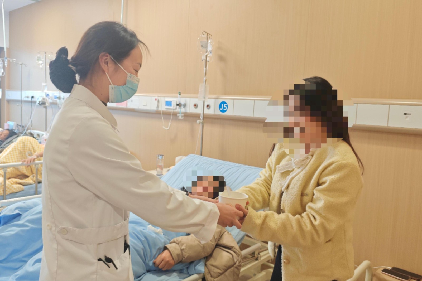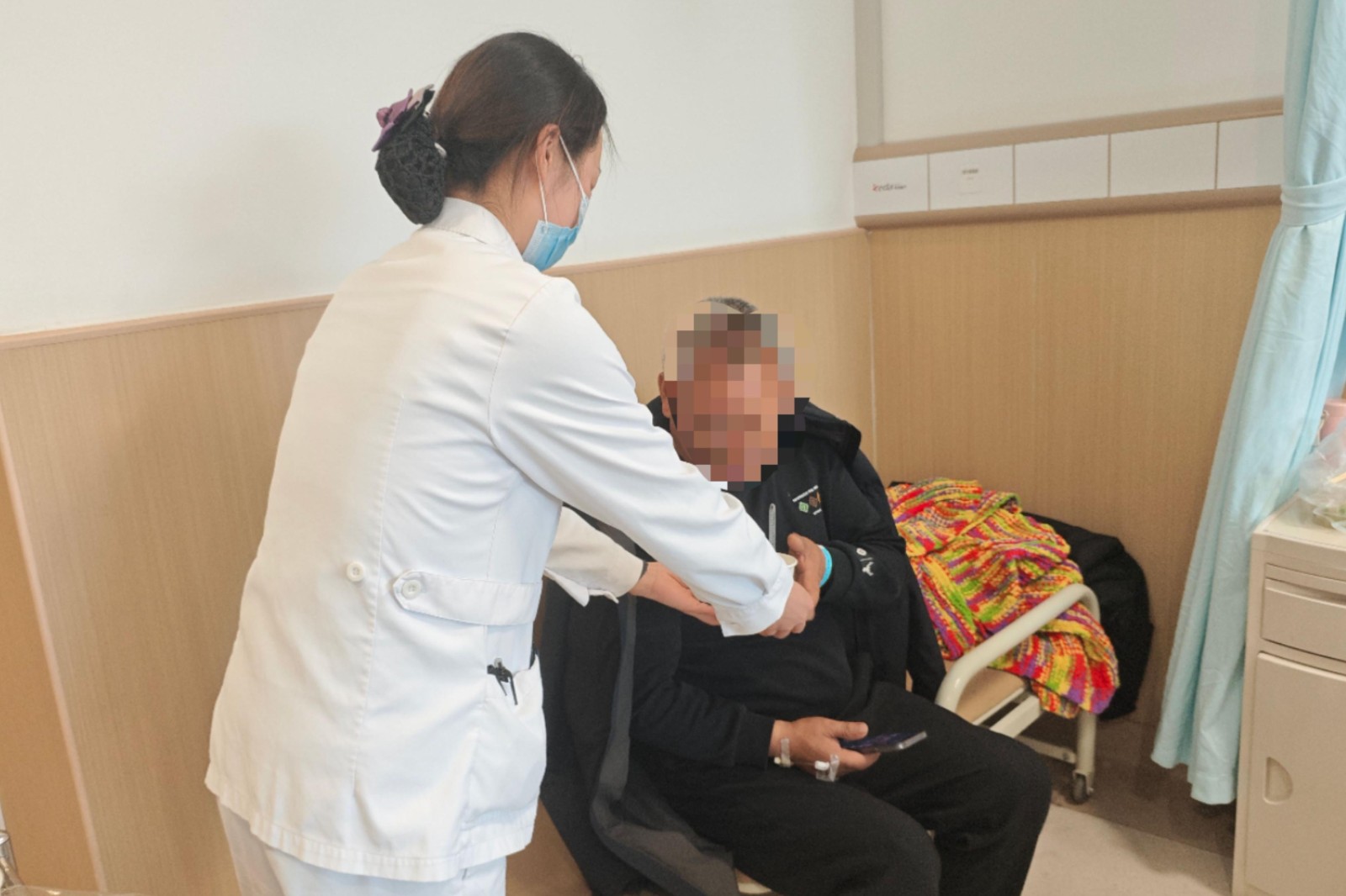 活動當(dāng)天,醫(yī)院食堂內(nèi)歡聲笑語不斷。醫(yī)護(hù)人員化身“巧手師傅”,揉面、調(diào)餡、搓圓,將傳統(tǒng)節(jié)日的儀式感融入每一個步驟。隨著元宵出鍋,各科室代表有序領(lǐng)取,并分送至門診、病房及行政區(qū)域。在病房內(nèi),護(hù)士將元宵送至患者床前,輕聲道:“元宵節(jié)快樂!吃了這碗元宵,愿您早日康復(fù)?!被颊邚埌⒁探舆^碗:“住院還能吃到你們親手包的元宵,心里真暖!”在病房內(nèi)等待的患者家屬劉大哥接過醫(yī)護(hù)人員遞去的元宵說:“大年十五在醫(yī)院過,本來有點心情低落,沒想到你們這么周到!”這場跨越崗位與病房的暖心互動,讓醫(yī)患情誼在節(jié)日氛圍中悄然升溫。