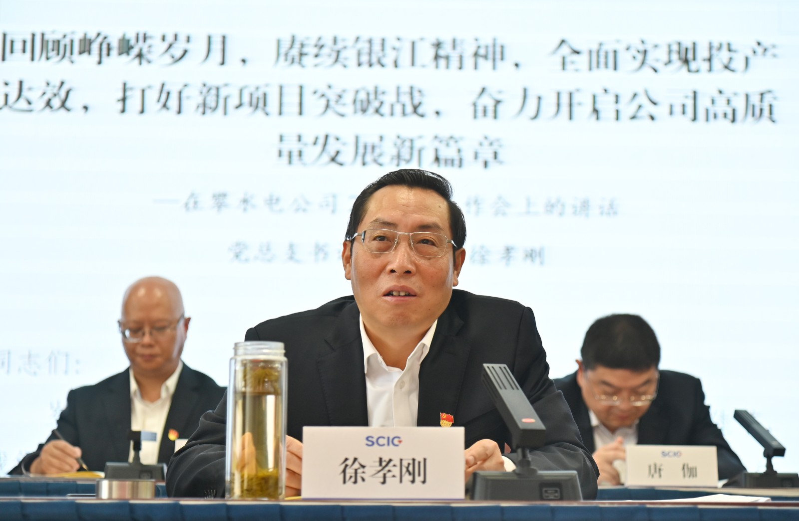 徐孝剛強(qiáng)調(diào),2025年,是全面完成“十四五”規(guī)劃目標(biāo)的收官之年,是“十五五”謀篇布局重要之年,是全面貫徹落實(shí)省委、省政府以及集團(tuán)公司的戰(zhàn)略部署、銀江水電站實(shí)現(xiàn)全部機(jī)組投產(chǎn)發(fā)電攻堅(jiān)突破的奮進(jìn)之年。開(kāi)局關(guān)乎全局,起步?jīng)Q定全程,公司各部門、各參建單位要緊緊圍繞后續(xù)4臺(tái)機(jī)組投產(chǎn)發(fā)電目標(biāo),全面梳理各自承擔(dān)的工作任務(wù),拿出切實(shí)可行的思路舉措,建立任務(wù)清單,掛圖作戰(zhàn),以更加飽滿的熱情、更加務(wù)實(shí)的作風(fēng)、更加嚴(yán)謹(jǐn)?shù)膽B(tài)度,投身到新的一年工作中去,堅(jiān)決打贏全面投產(chǎn)發(fā)電攻堅(jiān)戰(zhàn),在推進(jìn)公司高質(zhì)量發(fā)展新征程上再創(chuàng)佳績(jī)、再立新功!