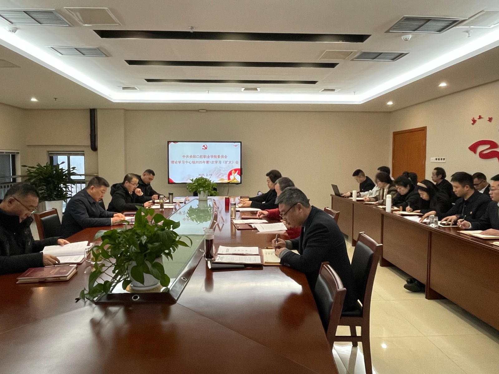 2月19日,資陽口腔職業(yè)學院召開理論學習中心組2025年第1次學習(擴大)會,集中學習習近平總書記關(guān)于全面加強黨的紀律建設(shè)的重要論述和在中央政治局民主生活會上的重要講話精神等內(nèi)容,進一步增強開好民主生活會的思想自覺、行動自覺。學院黨委書記、理事長張中偉主持會議并談?wù)J識體會,學院領(lǐng)導班子成員參加。