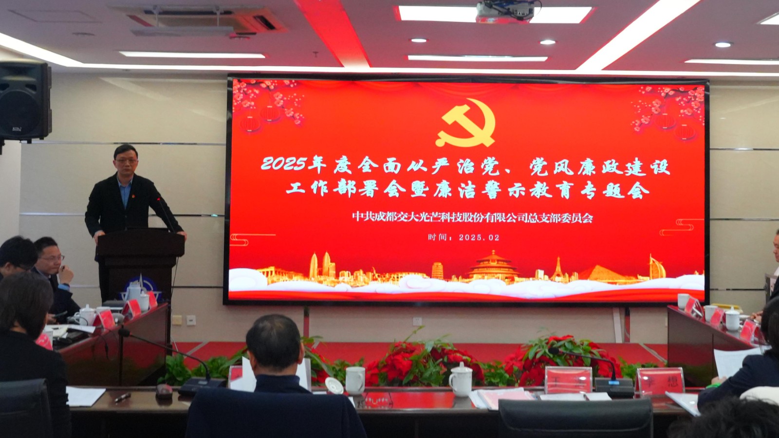 為深入學(xué)習(xí)貫徹二十屆中紀委四次全會精神,深入推進公司黨風(fēng)廉政建設(shè)和反腐敗工作,2月21日,交大光芒黨總支召開2025年度全面從嚴治黨、黨風(fēng)廉政建設(shè)工作部署會暨廉潔警示教育大會,黨總支書記、常務(wù)副總經(jīng)理王濤主持會議,公司領(lǐng)導(dǎo)班子成員、主管及以上管理人員、黨員參加會議。