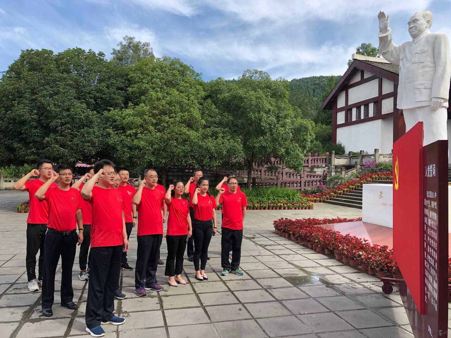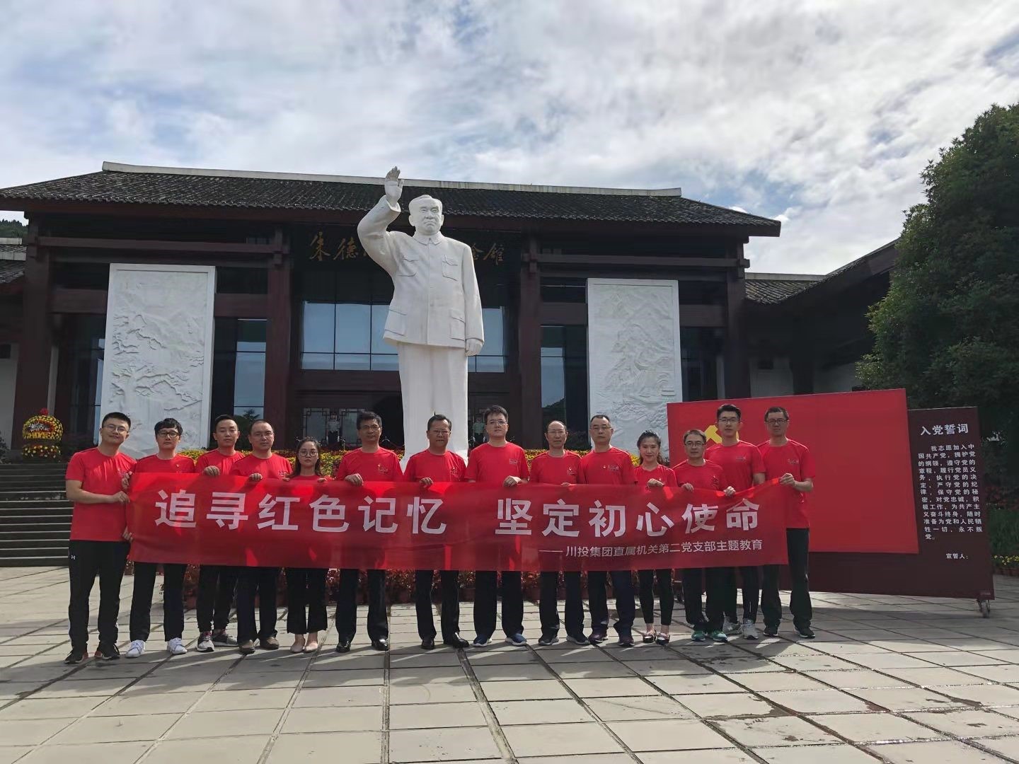 在朱德同志故居紀念館前,蔣茂森副總經(jīng)理帶領全體黨員整齊列隊,重溫入黨誓詞。進入展廳,全體黨員認真聆聽朱德同志生平事跡,仔細觀看了朱德同志生前照片、實物、影像資料。朱德出生佃農(nóng)家庭,從小立志刻苦好學,懷著為人民謀幸福、為民族謀復興的抱負和理想,放棄高管厚祿,輾轉國內(nèi)多地甚至國外,追尋黨的組織并在德國加入中國共產(chǎn)黨,從此走上為黨和人民事業(yè)奮斗的偉大道路。