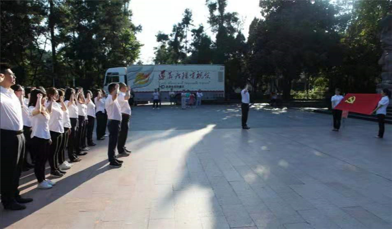 在紅軍山烈士陵園“紅軍烈士永垂不朽”紀(jì)念碑前,全體人員向紅軍烈士敬獻(xiàn)花籃、鞠躬致敬,表達(dá)對(duì)革命先烈的崇敬緬懷之情。由公司紀(jì)委書(shū)記冉蘭平領(lǐng)誓,面對(duì)黨旗重溫入黨誓詞,鏗鏘有力的莊嚴(yán)誓言激蕩在每個(gè)黨員心中。