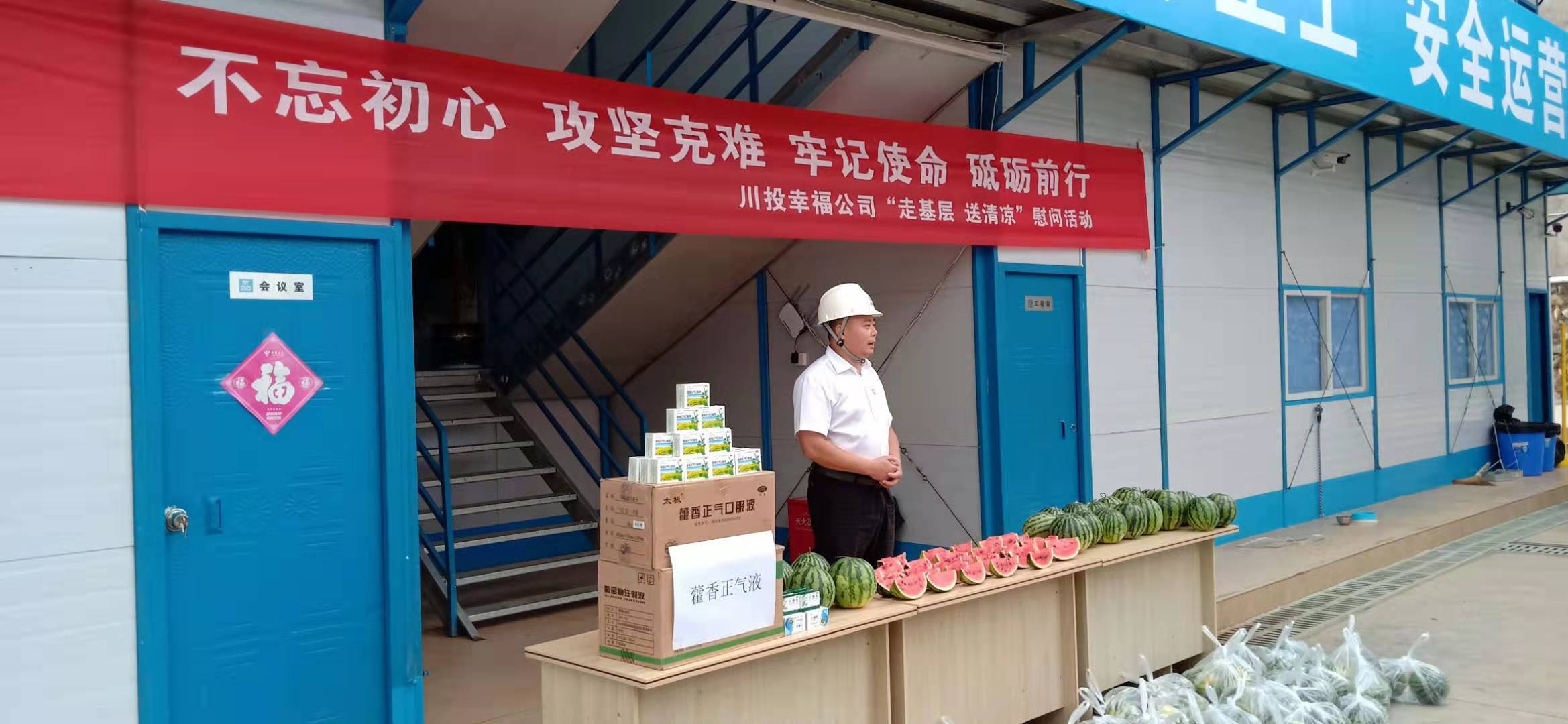 為踐行集團(tuán)公司“雙轉(zhuǎn)雙促”活動(dòng)要求,推動(dòng)實(shí)施“雙爭(zhēng)雙百”計(jì)劃,回應(yīng)項(xiàng)目施工一線民工訴求,營(yíng)造安全、和諧的共建共享氛圍,7月23日,房地產(chǎn)公司黨支部副書記、總經(jīng)理張碧波在米易“時(shí)光水街”項(xiàng)目建設(shè)現(xiàn)場(chǎng)參加川投幸福公司“不忘初心攻堅(jiān)克難 牢記使命 砥礪前行”走基層送清涼慰問活動(dòng)。本次慰問以參建各方一線民工、施工管理人員為主,活動(dòng)發(fā)放了西瓜、藿香正氣液、十滴水等防暑降溫用品,獲得參建各方一致好評(píng)。
