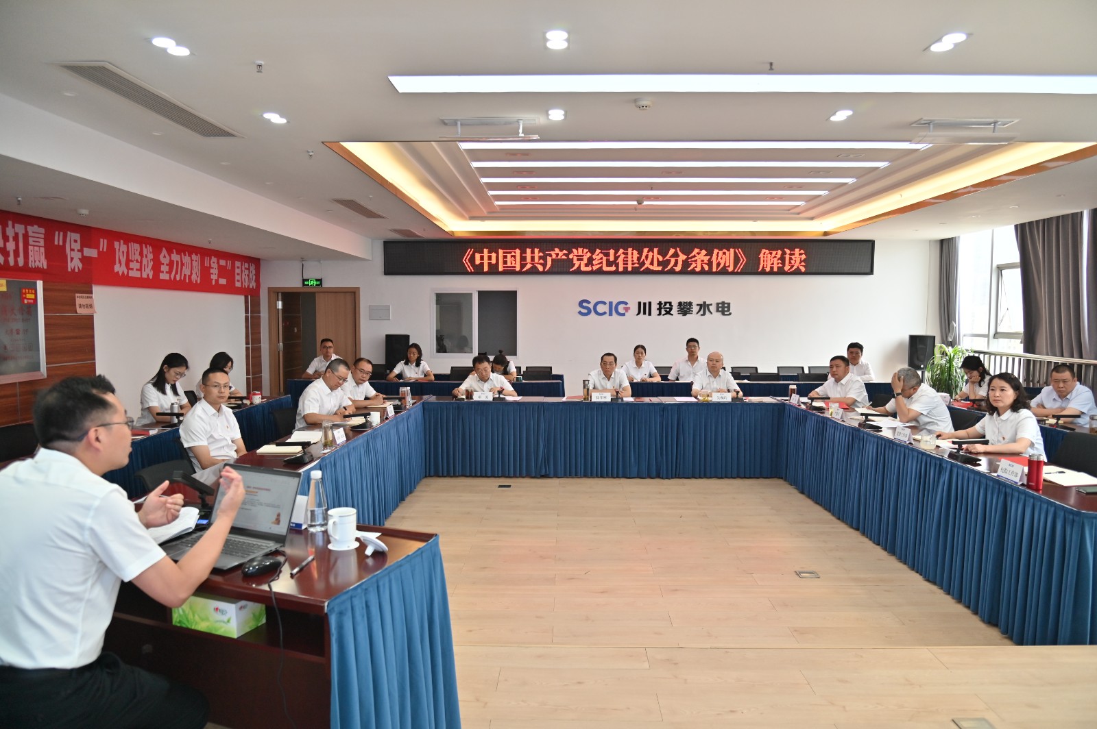 為深入學習貫徹習近平總書記關于加強黨的紀律建設的重要論述和黨紀學習教育的重要講話指示精神,系統(tǒng)學習新修訂的《中國共產(chǎn)黨紀律處分條例》,5月9日至11日,川投能源所屬攀水電黨總支舉辦黨紀學習教育讀書班,川投能源副總經(jīng)理、攀水電黨總支書記、董事長徐孝剛等公司領導班子成員參加。