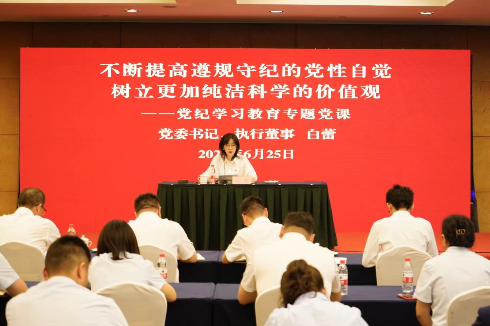 為深入學(xué)習(xí)貫徹習(xí)近平總書記關(guān)于加強黨的紀(jì)律建設(shè)的重要論述以及習(xí)近平總書記關(guān)于黨紀(jì)學(xué)習(xí)教育重要講話和重要指示精神,全面貫徹落實中央和上級黨委對學(xué)習(xí)貫徹新修訂《中國共產(chǎn)黨紀(jì)律處分條例》的部署要求,6月25日上午,川投國網(wǎng)黨委書記、執(zhí)行董事白蕾以《不斷提高遵規(guī)守紀(jì)的黨性自覺 樹立更加純潔科學(xué)的價值觀》為題,為公司黨員干部講授黨紀(jì)學(xué)習(xí)教育專題黨課。