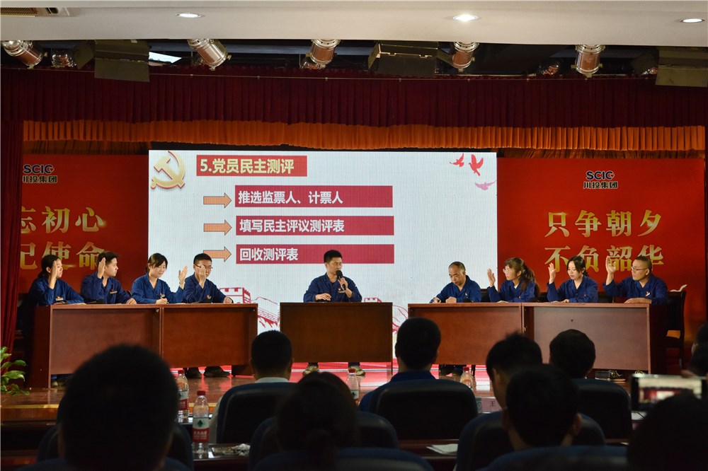 動態(tài)演示現(xiàn)場,川南發(fā)電黨委燃煤質(zhì)檢部黨支部、經(jīng)營管理部黨支部、發(fā)電部黨支部分別以“組織生活會”“黨員大會”“主題黨日”為主題進(jìn)行模擬演示,通過現(xiàn)場移位、情景再現(xiàn)等方式生動形象的把工作內(nèi)容、工作流程、工作重點(diǎn)展示出來,讓觀摩代表對如何開展工作一目了然。