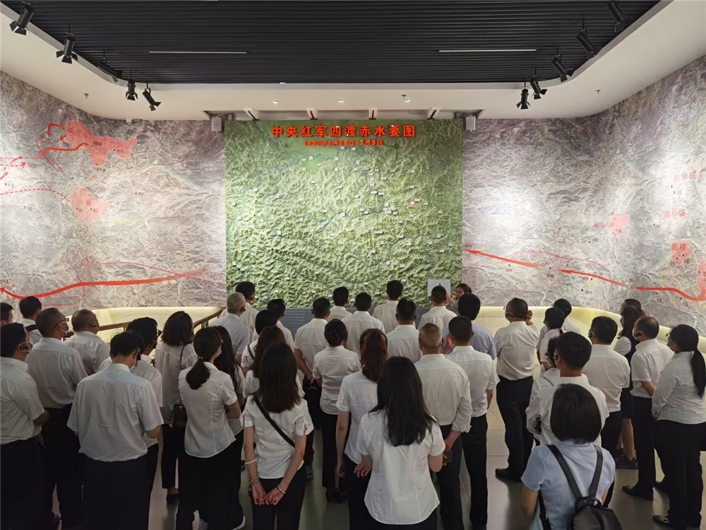 現(xiàn)場教學淬初心。5月13日,全體學員走進紅軍四渡赤水戰(zhàn)役的發(fā)軔地、主戰(zhàn)場開展黨史學習教育。在青杠坡戰(zhàn)斗遺址,面對革命烈士紀念碑列隊肅立,敬獻鮮花,重溫入黨誓詞。全體學員走進四渡赤水紀念館,通過聽現(xiàn)場講解,觀看文字、圖片、實物了解毛澤東及其戰(zhàn)友率領中央紅軍3萬余人四次飛渡赤水河,擺脫40萬敵軍圍追堵截,實現(xiàn)戰(zhàn)略轉(zhuǎn)移的偉大歷史事件。在紀念館后面的石階上,全體學員席地而坐,唱紅色歌曲,聆聽微黨課《從四渡赤水看黨的群眾路線》,近距離感受黨在困難重重的歷史背景下英勇斗爭、發(fā)展壯大的艱辛歷程,進一步堅定了信仰信念,激發(fā)了奮進之志氣。