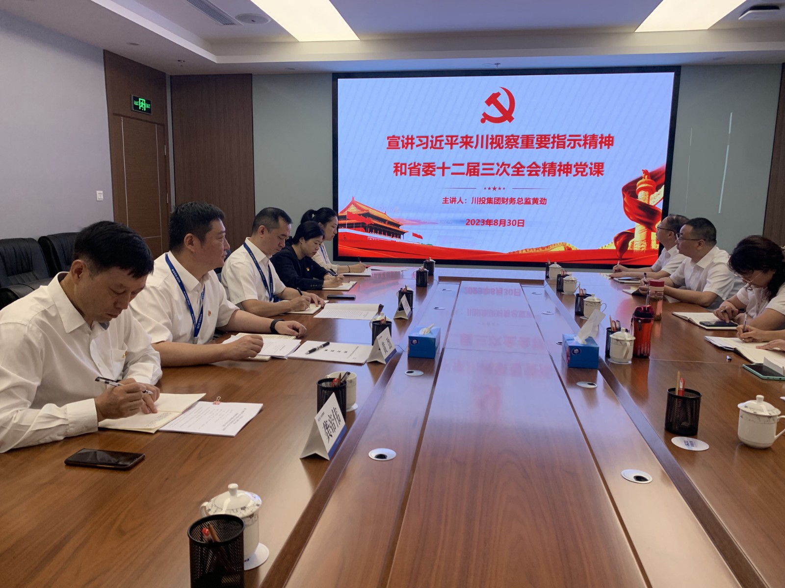 8月31日,集團(tuán)公司財(cái)務(wù)總監(jiān)黃勁為集團(tuán)財(cái)金管理黨支部、川投怡心湖黨支部、川投空港黨支部宣講習(xí)近平總書記來(lái)川視察重要指示精神和省委十二屆三次全會(huì)精神。