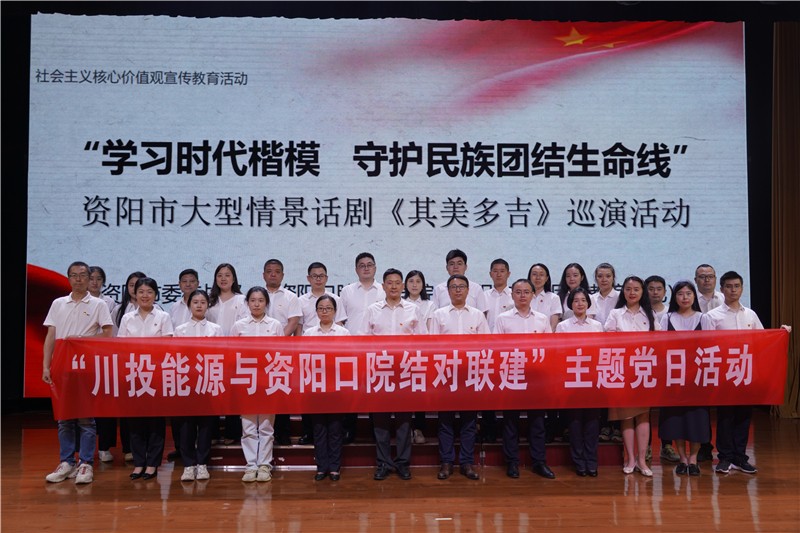 為進一步深化學(xué)習(xí)貫徹習(xí)近平新時代中國特色社會主義思想主題教育,豐富川投能源與口腔學(xué)院結(jié)對聯(lián)建的活動形式,不斷激發(fā)廣大黨員干部愛黨愛國情懷,6月16日下午,川投能源與資陽口腔職業(yè)學(xué)院開展結(jié)對聯(lián)建主題黨日活動——觀看話劇《其美多吉》。