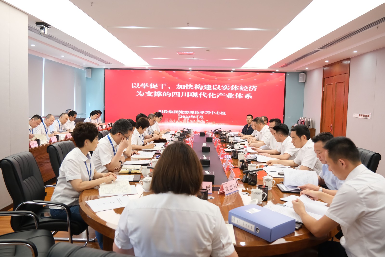 7月21日,川投集團黨委召開理論學習中心組2023年第6次學習(擴大)會,圍繞“以學促干,加快構建以實體經(jīng)濟為支撐的四川現(xiàn)代化產(chǎn)業(yè)體系”開展專題研討。省國資委二級巡視員符定平,省國資委宣傳工作處、企業(yè)領導人員管理處相關同志到會旁聽督導。集團黨委書記、董事長吳曉曦主持會議,集團黨委理論學習中心組成員出席會議,集團總經(jīng)理助理、各部門負責人列席會議。