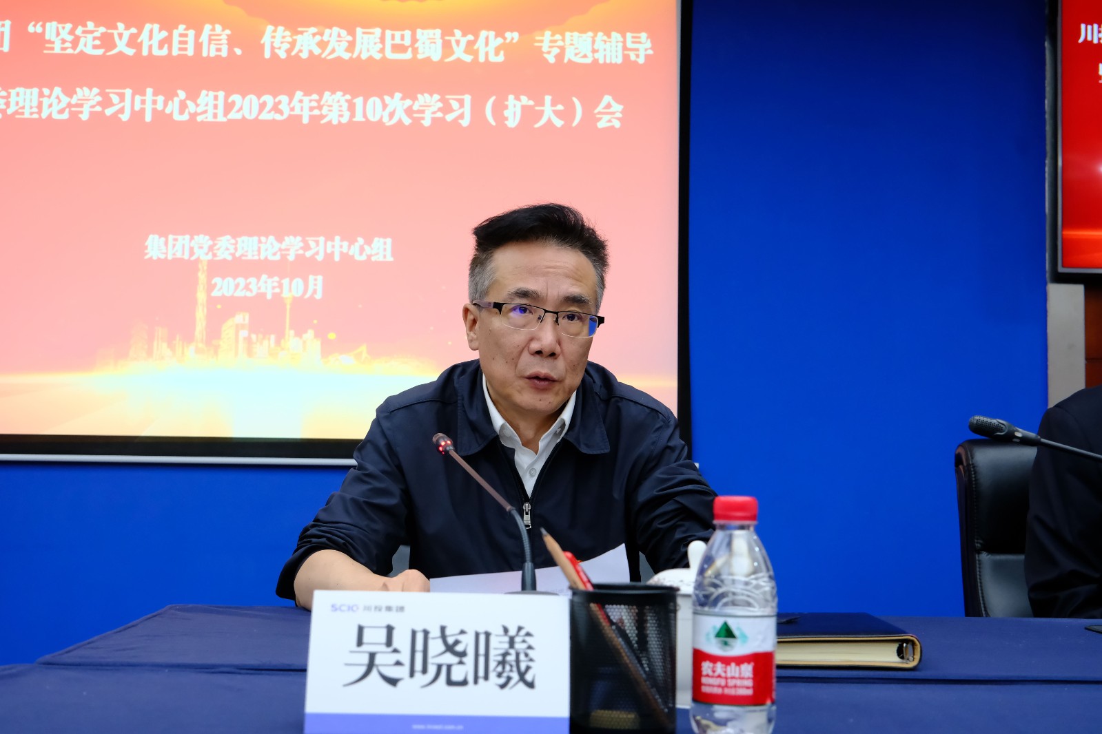 10月12日上午,川投集團召開黨委理論學習中心組學習(擴大)會,深入學習習近平總書記關(guān)于宣傳思想文化和意識形態(tài)工作的重要指示、習近平總書記關(guān)于全面從嚴治黨的重要論述、習近平總書記關(guān)于主題教育的最新重要講話,重溫學習習近平總書記在文化傳承發(fā)展座談會上的重要講話,傳達學習全國宣傳思想文化工作會議、中央和省委巡視工作規(guī)劃專題培訓會精神,集中學習黨的民族宗教政策等,圍繞“堅定文化自信、傳承發(fā)展巴蜀文化”開展專題輔導,集團黨委書記吳曉曦主持會議并講話。
